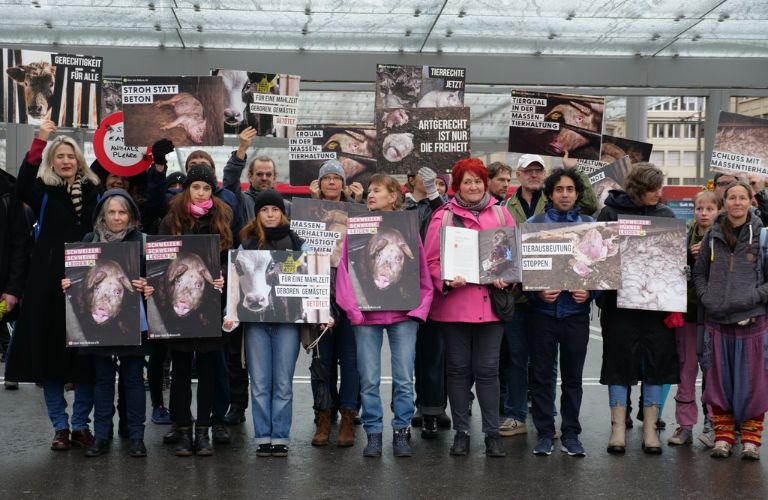 À propos BEA: Ihr galt unser umfassender Widerstand. So reichten wir bereits im Vorfeld eine Beschwerde bei der Schweizerischen Lauterkeitskommission, lancierten einen Vorstoss im Berner Stadtrat und protestierten vor Ort gegen die gewaltsame Zurschaustellung von Milchkühen – mit tatkräftiger Unterstützung von «Trachten statt Schlachten».